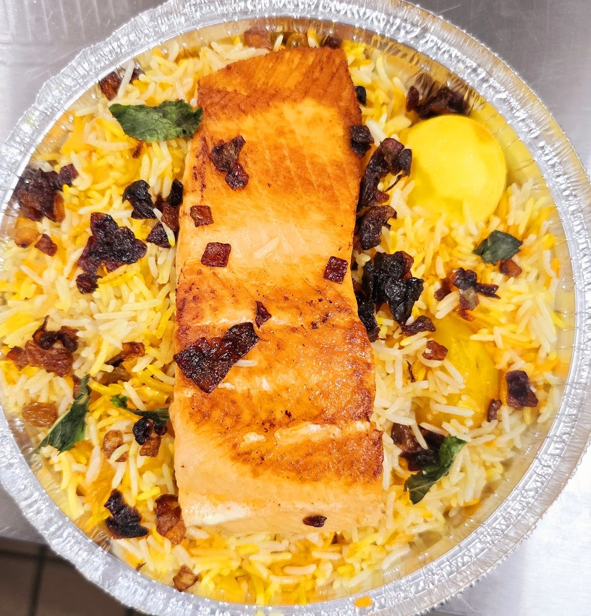 The menu is packed with hearty options that keep regulars coming back. One of the standout dishes is the Salmon Biryani, where tender salmon is layered with fragrant rice and balanced spices that don’t overpower the fish. It’s rich, filling, and feels carefully prepared. Equally popular is the Chicken and Lamb over Rice Bowl, a classic choice that delivers generous portions, savory meat, and well-seasoned rice that holds everything together. These dishes are often mentioned in reviews for their consistency and satisfying flavors.
